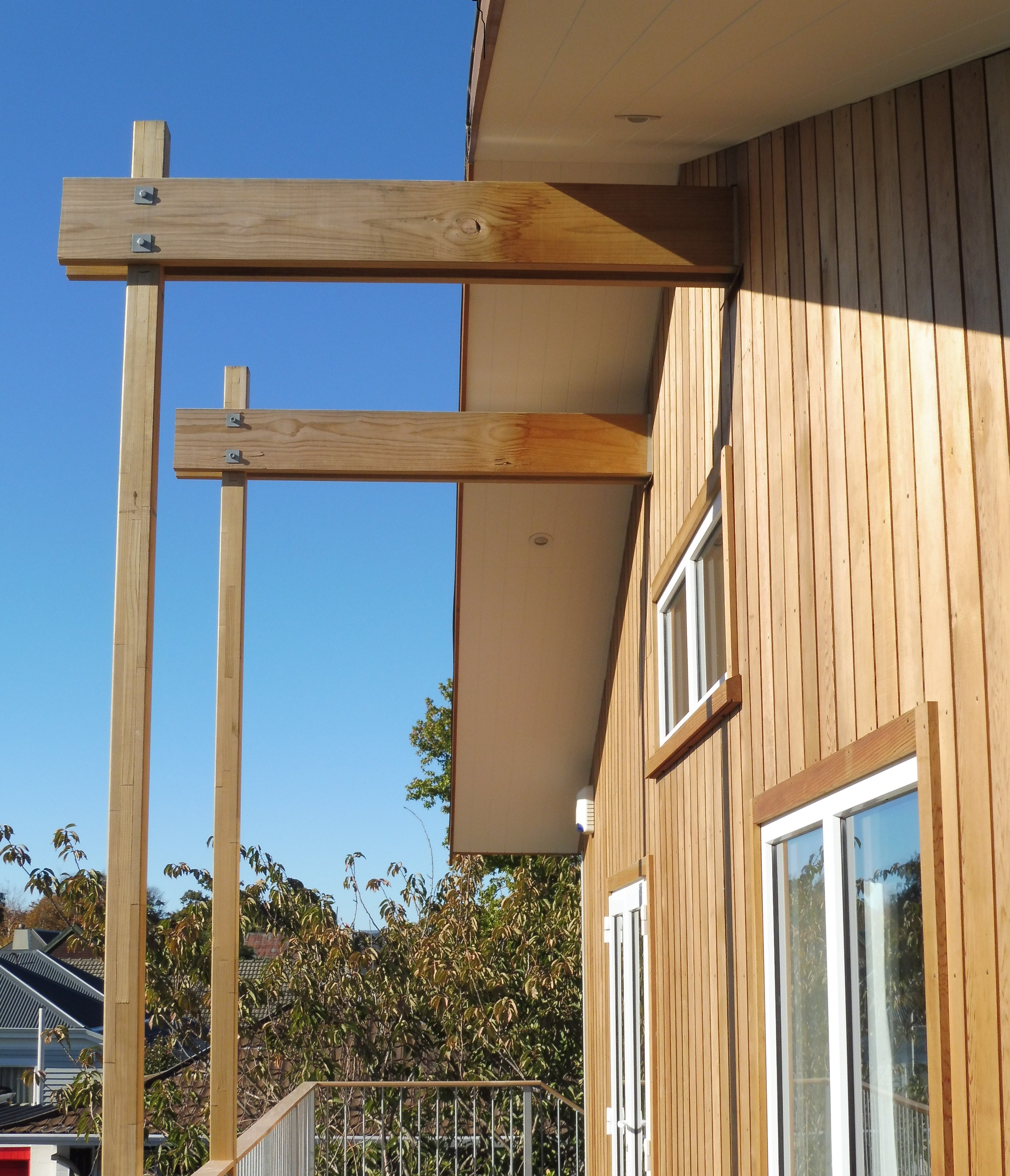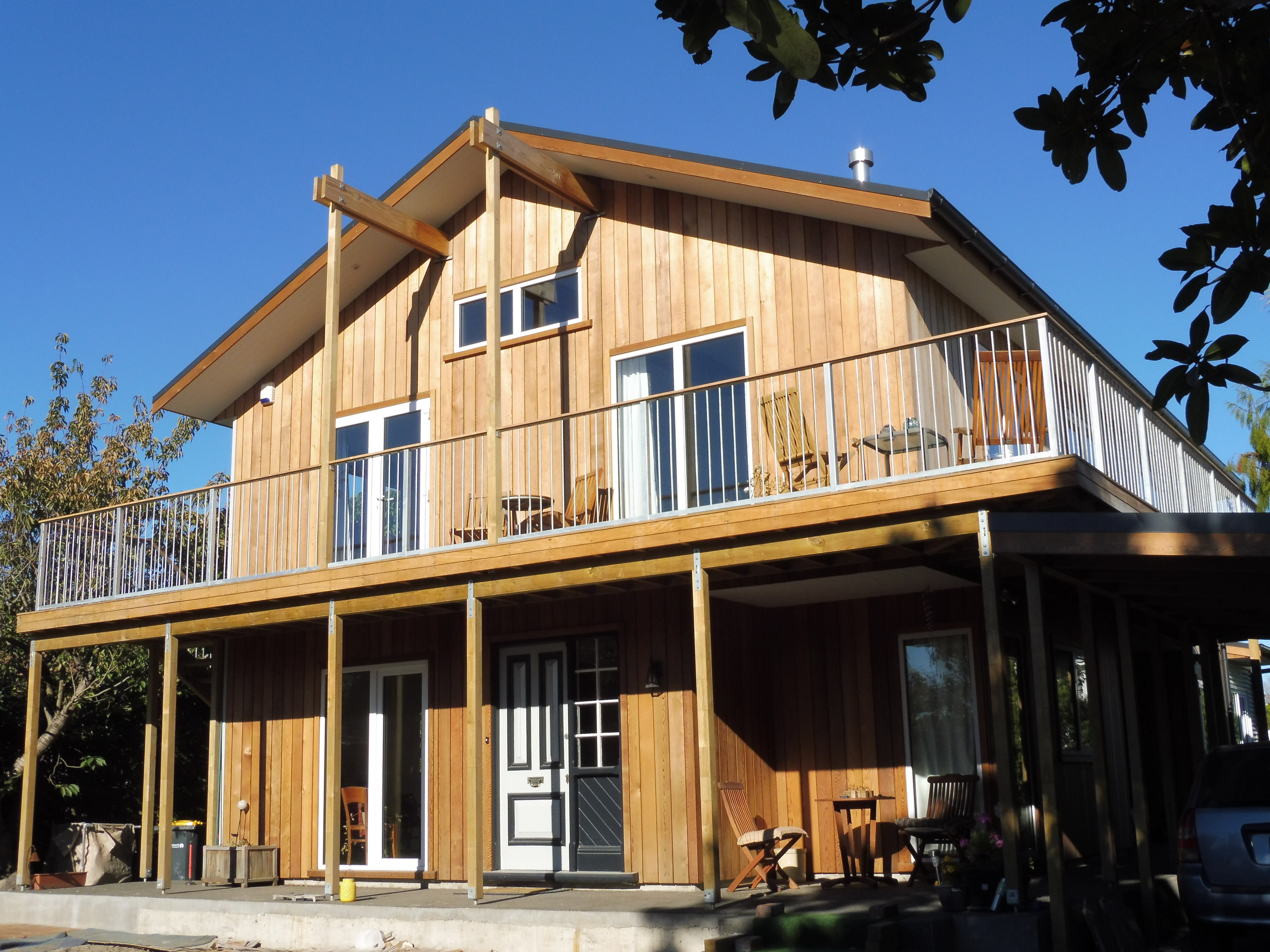 On an idyllic section with well established landscaping is this new two-storey dwelling located. The open plan living / dining and kitchen area is situated on the first floor which creates the feeling of living amongst the trees. The main wall cladding is untreated ship-lapped cedar which will weather over the time. The timber balcony on the north and west side allows for a direct connection between the interior and the exterior.